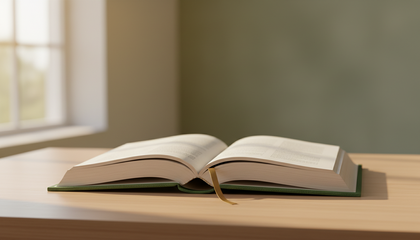 - Plan large environnemental : Place le livre dans une pièce (ex. bibliothèque ou laboratoire), établissant l’habitat naturel du public cible.